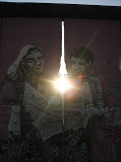 La baiser entre Honecker, chancelier dela RDA, et Brejnev, à la tête de l'URSS